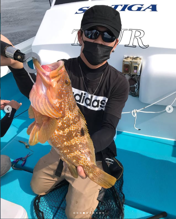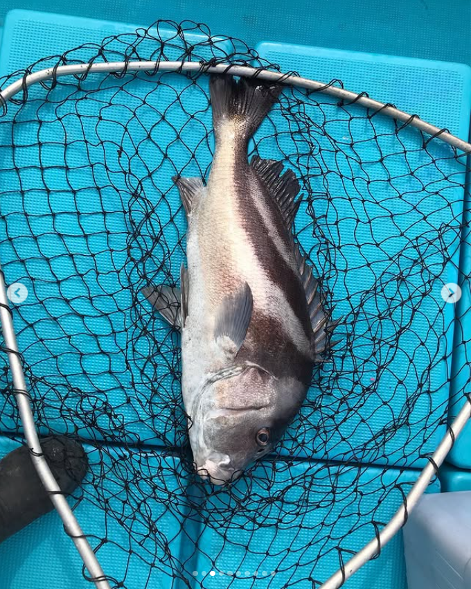 竿の曲がりがヤバイ方発見😳よってみるとドラグがジージー止まらない😍スリリングなやり取りの末、上がって来たのは、特大のコショウダイ70over楽しませてもらいました👍🏻
